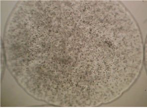 Hydrogels, such as agarose and alginate, have been utilized successfully in allowing suspension of cells in 3D culture that promotes the chondrocytic phenotype. In just 4 weeks, agarose wells seeded with bovine articular chondrocytes demonstrated synthesis of neocartilage constructs that possessed morphological, biochemical, histological, and biomechanical similarity to native articular cartilage. 31 Alginate has gained particular favor, as it can be seeded with cells and then transformed from a liquid to a gel immediately in the presence of calcium through polymerization of its L-glucuronic acid and D-mannuronic acid constituents. This allows formation of small beads with chondrocytes suspended in culture within the gel ( Fig. 5.3 ). The alginate can then be depolymerized after the desired period of culture through the addition of a calcium chelator such as sodium citrate, which releases the redifferentiated chondrocytes and their pericellular matrix from the gel. The chondrocytes and associate matrix are then able to be transferred into semipermeable wells where they gradually mature into scaffoldfree disks of neocartilage.