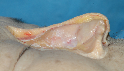 The dorsal skin is thickest in the nasion and thinnest in the rhinion (Fig. 5.3), resulting in a slight natural convexity in the rhinion area. There are two clinical implications related to this anatomic feature of the dorsum. First, when dissecting near the area of the rhinion or hump, a curved periosteal elevator comes in handy; and second, when reducing a hump, a flat dorsum is indicative of over-resection.