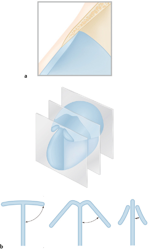 Anatomy of the rhinion area of the osseocartilaginous vault is another important point to understand when performing a hump reduction. There is a broad overlap of the nasal bones above and the septum and upper lateral cartilage (ULC) below (Fig. 5.4a). Many times it is sufficient to remove this bony hump until it reveals the underlying cartilage. There is a change in the shape of the dorsal septum and in its relation with the ULC as it progresses caudally from the bony junction—namely, from a broad “T” shape to a “Y” shape to an “I” shape (Fig. 5.4b). Resection of the dorsal septum while performing hump reduction will destroy this natural anatomy. Reconstruction with regard to the natural thickness of the dorsal septum will prevent aesthetic and functional complications such as the inverted-V deformity and nasal obstruction.