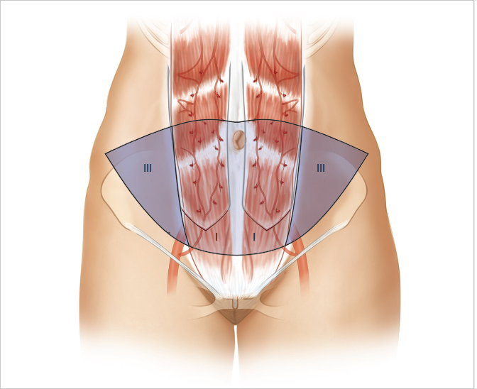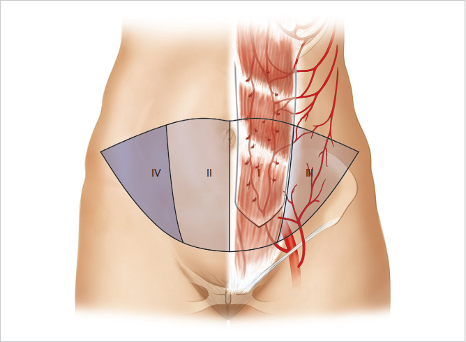 Hartrampf and colleagues divided the skin of the lower abdomen into four distinct zones based on their proximity to the underlying perforator supply and, as a result, their degree of perfusion. The zones are as follows: