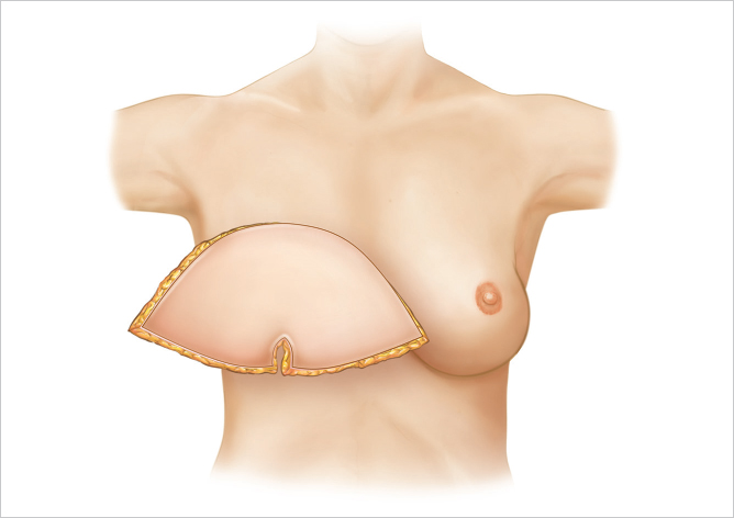 Transposition of the flap to the breast.