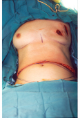 For these reasons the inframammary crease is usually planned at least 2 cm above the opposite inframammary crease and can be defined after abdominal skin closure.