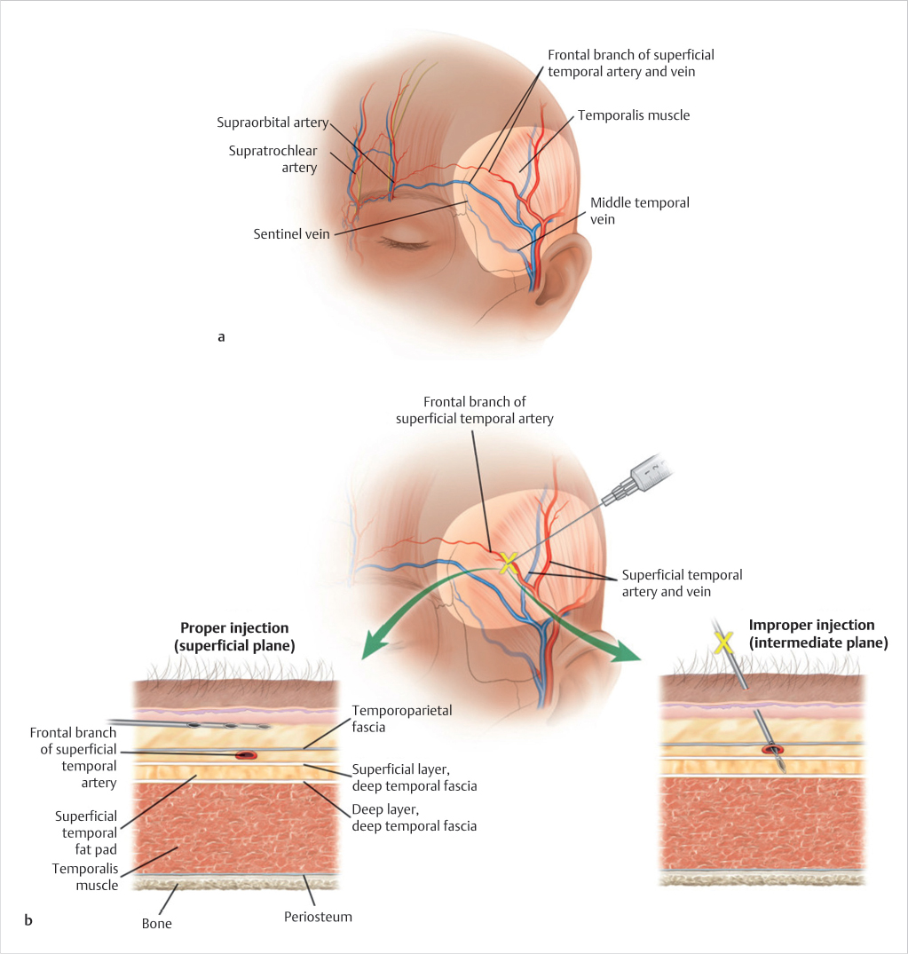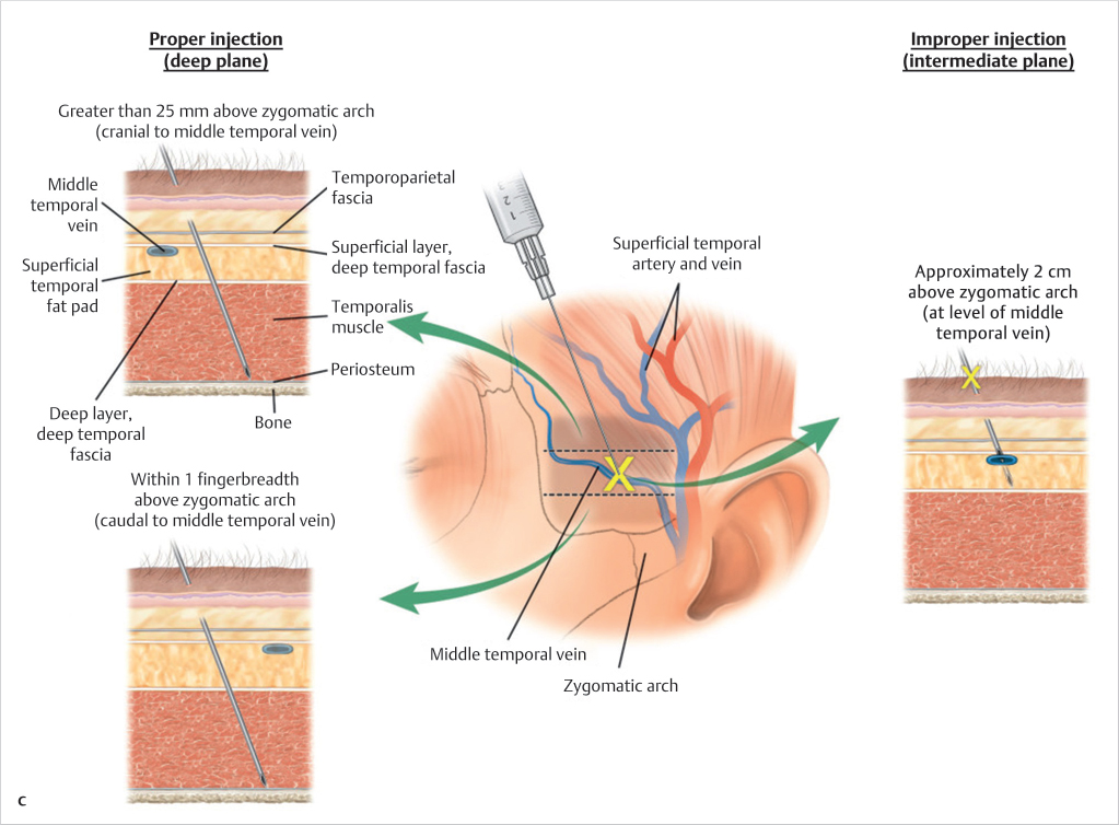 There are two main methods for injecting temples: a periosteal transmuscular approach and a subcutaneous/subgaleal (subtemporoparietal fascia) approach, which I prefer for its smoothness and longevity.