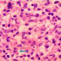 H&E 100×, Coccidiodomycosis, inflammation with scattered multinucleated giant cells
