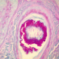 The diagnosis of coccidioidomycosis can be made using histopathology, culture, serology and imaging studies. Under the microscope, coccidioidomycosis appears as a large spherule filled with endospores that are highlighted with either PAS or silver staining (Fig. 27.2). Cultures of pus, broncho-alveolar sputum (Figs. 27.3 and 27.4), and synovial fluid provide the best results but are dependent on the extent of dissemination. Cultures of blood, pleural fluid, and cerebral spinal fluid can be used but are generally less sensitive. Serology is performed to check for elevated serum complement-fixing antibody (CFA) titers. Titers greater than 1:32 indicate disseminated disease. In cases of meningitis, the serology CFA will be low in the blood but positive in the cerebral spinal fluid. Enzyme-linked immunosorbent assay (ELISA) is used to tag 33-kDa antigens and monitor for disease progression and response to treatment. Chest radiography is used to screen for pulmonary disease and may demonstrate hilar adenopathy, pleural effusion, infiltrates, and thin-walled cavities that remain after primary infection.