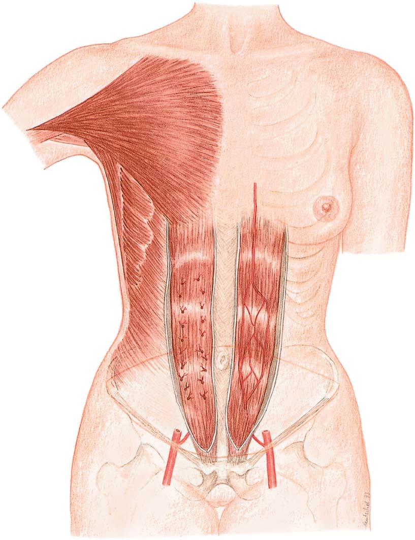 The aim in traditional pedicled TRAM flap surgery was to include the largest possible number of perforators in the flap. This has changed with the development of microsurgical techniques. Greater emphasis is now placed on leaving as much muscle in place as possible with intact innervation and ensuring flap vascularization with only one or two perforating vessels.