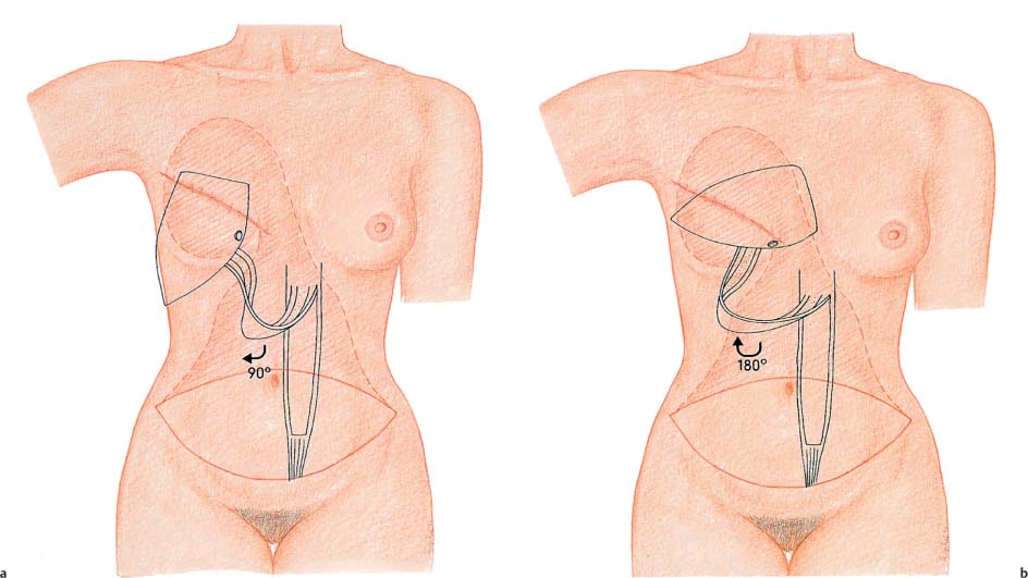 The bipedicled rectus flap is not discussed in the present book. Available studies confirm our own experience that the associated abdominal wall morbidity is too great to justify its use. Even attempted muscle-sparing bipedicled techniques result in major functional deficits in the rectus abdominis. Two-thirds of patients are unable to sit up from a supine position without using their hands. Since microsurgical procedures involve a much lower rate of functional loss, bipedicled rectus flap procedures should no longer be used. If suitable expertise in the relevant microsurgical techniques is lacking, the patient should be given a referral.