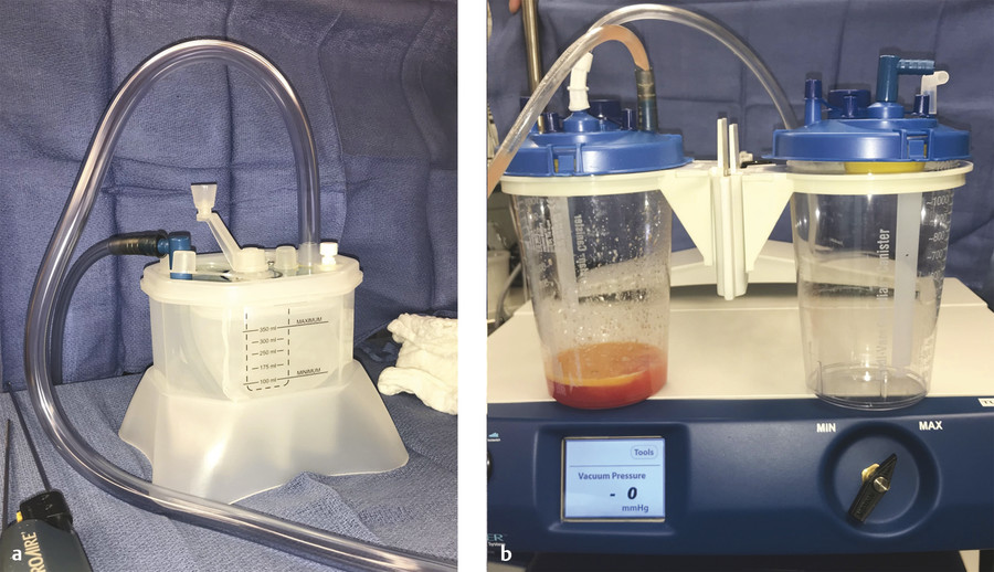 Manual fat harvest is another commonly performed technique, using a 10-mL syringe connected to a blunt liposuction cannula; the plunger is held in a partially-pulled-back position to achieve negative pressure. 29 Some authors feel that this technique minimizes damage to adipocytes compared to mechanical suction, however, currently there is no evidence that either method leads to superior results. 17 , 29 , 30 , 31 , 32 Although some studies have shown greater counts of viable adipocytes or greater enzymatic activity with fat harvested from a manual technique compared to mechanical techniques, other studies have shown that fat harvested by suction-assisted or ultrasound-assisted liposuction has similar adipocyte and ADSC viability and function. 16 , 32 , 33 , 34 , 35 In contrast, laser-assisted liposuction has been linked to decreased viability and function of stromal cells and should thus be avoided. 36 A newer method of water jet–assisted liposuction has promising potential applications in fat grafting, with studies showing greater retention of adipocytes with this method than with manual harvest. 37 , 38