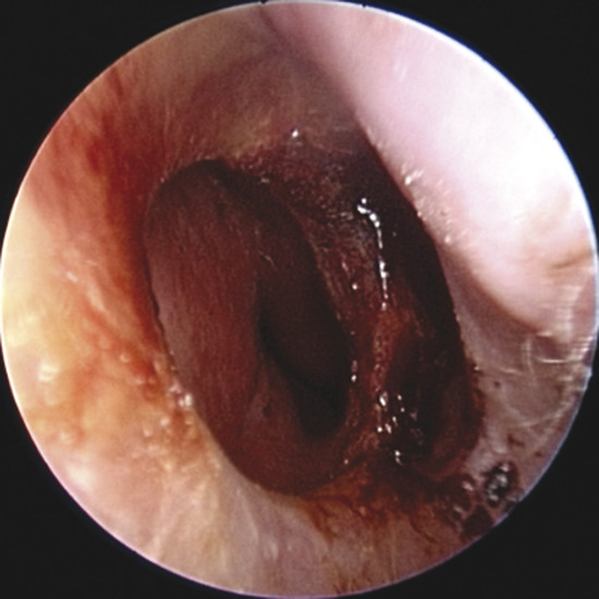 Fig. 6.2 The left nasal fossa. Small perforation with bleeding area.