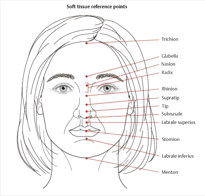Fig. 6.8 Soft tissue (anthropometric) reference points (frontal view).