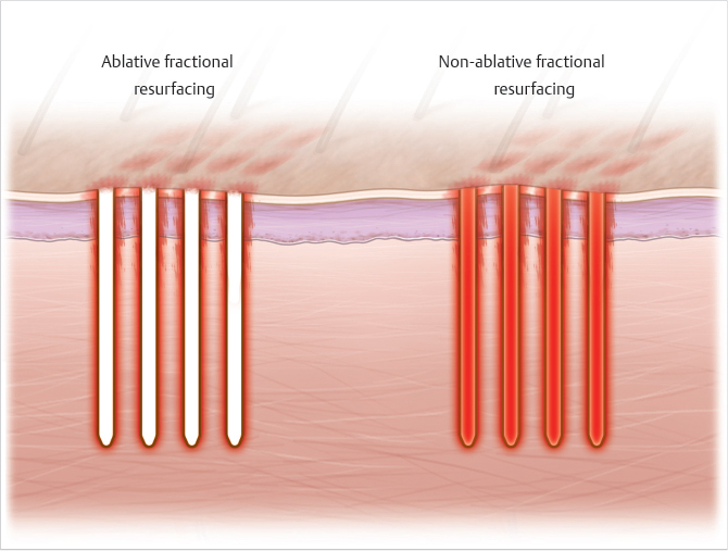 Patients with concerns about epidermal photoaging, mild rhytides, and scars (atrophic, burn, or traumatic) are good candidates for nonablative fractional resurfacing (NAFR). Younger scars respond better to laser therapy. Patients with deeper rhytides, greater laxity, traumatic scars, burn scars with contractures, and deeper acne scarring are good candidates for ablative fractional resurfacing (AFR). Patients should expect 2 weeks of downtime after AFR.