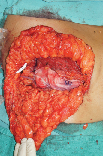 Identify the pectoralis major muscle and release the inferolateral margin of this muscle up to the 3-o’clock position on the right and the 9-o’clock position on the left (Figure 7.1).