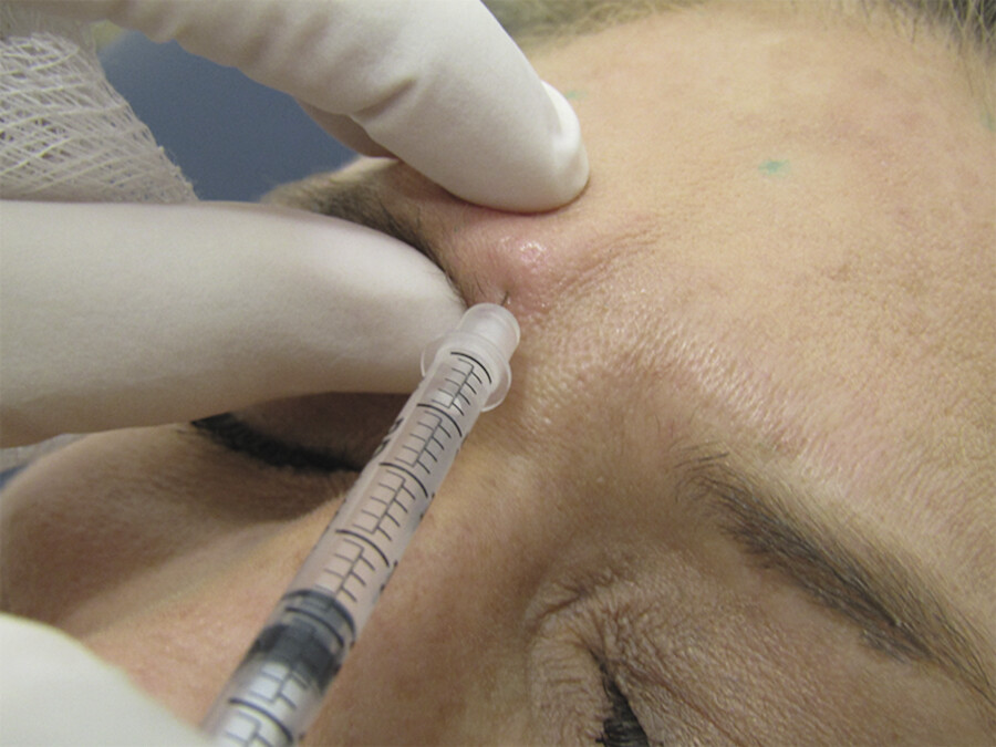 In patients who have a significant amount of bony or soft tissue loss, as well as acquired lid ptosis or in patients who have very deep static forehead rhytids, a neuromodulator alone is not going to give an optimal outcome and will likely have a higher incidence of side effects. In these patients it is best to consider ablative laser resurfacing or the use of soft tissue fillers to mitigate the depth of the rhytids without affecting brow elevation. All neuromodulators are best injected in the superficial aspect of the frontalis muscle creating small blebs. It is prudent to use a conservative amount of units and reassess a patient in 7 to 10 days than to overinject and cause an unwanted result for 3 to 4 months.