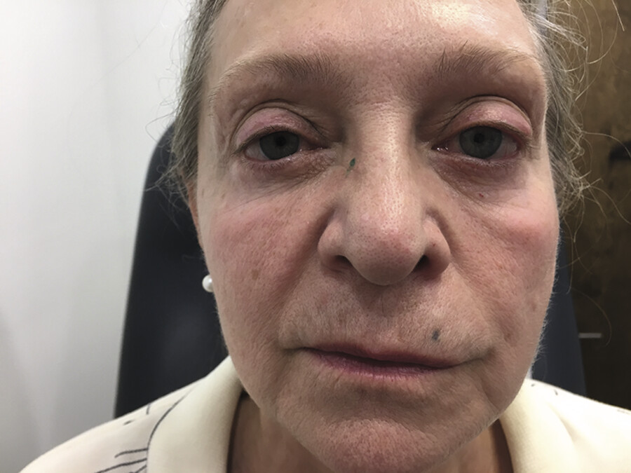 Another major side effect of using neuromodulators in the upper-third of the face is eyelid ptosis. The incidence of ptosis after such injections initially was reported to be approximately 5%, but recent studies have shown a reduced incidence of this complication. 11 , 12 Ptosis can occur up to 2 weeks after injections. Ptosis results from migration of the neuromodulator to the levator palpebrae superioris muscle. The levator is the only muscle responsible for opening the eyelid. To avoid ptosis, injections should occur at least 1 cm above the superior orbital rim and should not cross the midpupillary line. Apraclonidine 0.5% (Iopidine™) eye drops are recommended for treating neuromodulator-induced ptosis. Apraclonidine is an α2-adrenergic agonist, which causes Müller muscles to contract, quickly elevating the upper eyelid 1 to 3 mm. 13 Another eye preparation which can be used for ptosis is Naphcon-A, which contains naphazolin which is also an α2-adrenergic agonist. Acquired ptosis may be compensated for by an overactive frontalis muscle. Overtreatment of the frontalis usually unmasks this form of ptosis.
