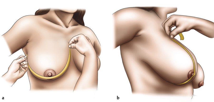 The goals for the initial preoperative consultation are to understand the patient’s current complaints; to establish whether the patient’s goals for surgery are cosmetic, therapeutic, or both; and to determine the risks and benefits of surgical intervention. Documentation is one of the simplest things a physician can do preoperatively to ensure that the elective breast surgery is successful. At a minimum, photographs illustrating severe breast hypertrophy are necessary, but other reports of associated symptoms can also be useful, especially if the patient is seeking insurance coverage for the surgery. The components of a thorough preoperative evaluation are discussed in detail in this and the following sections.