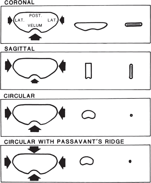 Fig. 72.2 Patterns of velopharyngeal closure. (Used with permission from Papel ID, ed. Facial Plastic and Reconstructive Surgery. 3rd ed. New York: Thieme; Fig. 80.3.)