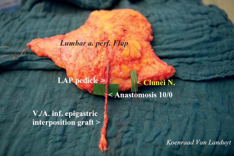 The LAP flaps were mainly introduced as local pedicled flaps to close defects in the lower back area. In 1988, Kroll and Rosenfield13 described a local flap based on lumbar artery perforators, although the perforators were unnamed at that time. Other authors clarified the use of local LAP flaps for reconstruction of the lumbosacral region.1417