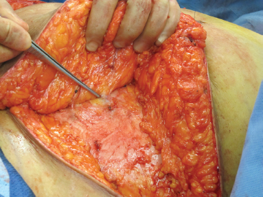 At this point, a critical decision is made regarding the MS free TRAM or the DIEP flap. If the patient’s body habitus permits and the presence of a dominant perforator with a palpable pulse is verified, a DIEP flap dissection is performed (Figure 9.2).