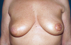 Aesthetic resections and attention to parenchymal closure have recently been advocated to avoid poor cosmetic results after large quadrantectomies. Several techniques of partial breast reconstruction, such as flaps or reduction mammaplasty procedures, 1 – 3 have been proposed; however, these require training in reconstructive plastic surgery. Most T1 and small T2 tumors can be managed without mastering such elaborate plastic surgery procedures. In these cases the final outcome can be impaired because of unfavorable and visible scarring, asymmetry of the areolas, localized glandular defects, or asymmetry of breast volume. 4