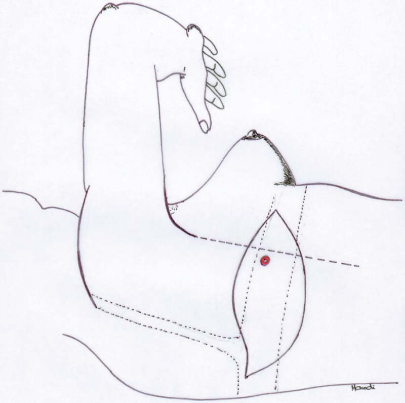 The LICAP flap can also be used for patients after massive weight loss who want to get rid of excessive tissue over the lateral thorax. When performing a mastopexy in these patients, this excess tissue can be used as a pedicled flap to augment the breast (pedicled flap autoaugmentation). Clearly, LICAP flaps have to be harvested bilaterally in these cases.26