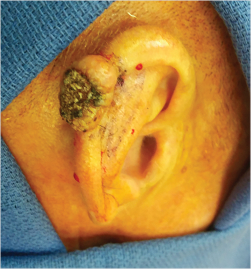 As the most common skin malignancy, BCC is recognized in approximately two million people annually with the most at risk populations being Caucasians, males, and individuals over age 65. 3 , 4 Incidence in males is 1.7 times that in females. 3 Risk factors for development include chronic sun exposure, particularly intermittent, intense ultraviolet (UV) light exposure, and sunburns at any age. 1 Other predisposing factors include exposure to chemical carcinogens, ionizing radiation, solid organ transplantation, predisposing skin lesions (nevus sebaceous), and history of genetic syndromes (Bayez, Gorlin, Xeroderma Pigmentosum). 1 Clinically, patients present with BCC most commonly in sun-exposed areas with 86% occurring on the head and neck. 5