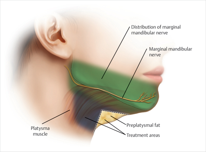 • This technique provides topographical landmarks that correlate to discrete fat compartments within the preplatysmal fat and allows for targeted, patient-customized treatment of submental fullness.