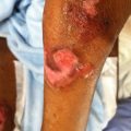 At the time of presentation, she was failing prednisone 80 mg daily. She was treated with 1 cycle of intravenous immunoglobulin (IVIg) and azathioprine was added as a steroid sparing agent. Two weeks following IVIg she showed significant clinical improvement (Fig 14.1b). Her prednisone was successfully tapered and she was controlled on azathioprine as monotherapy.