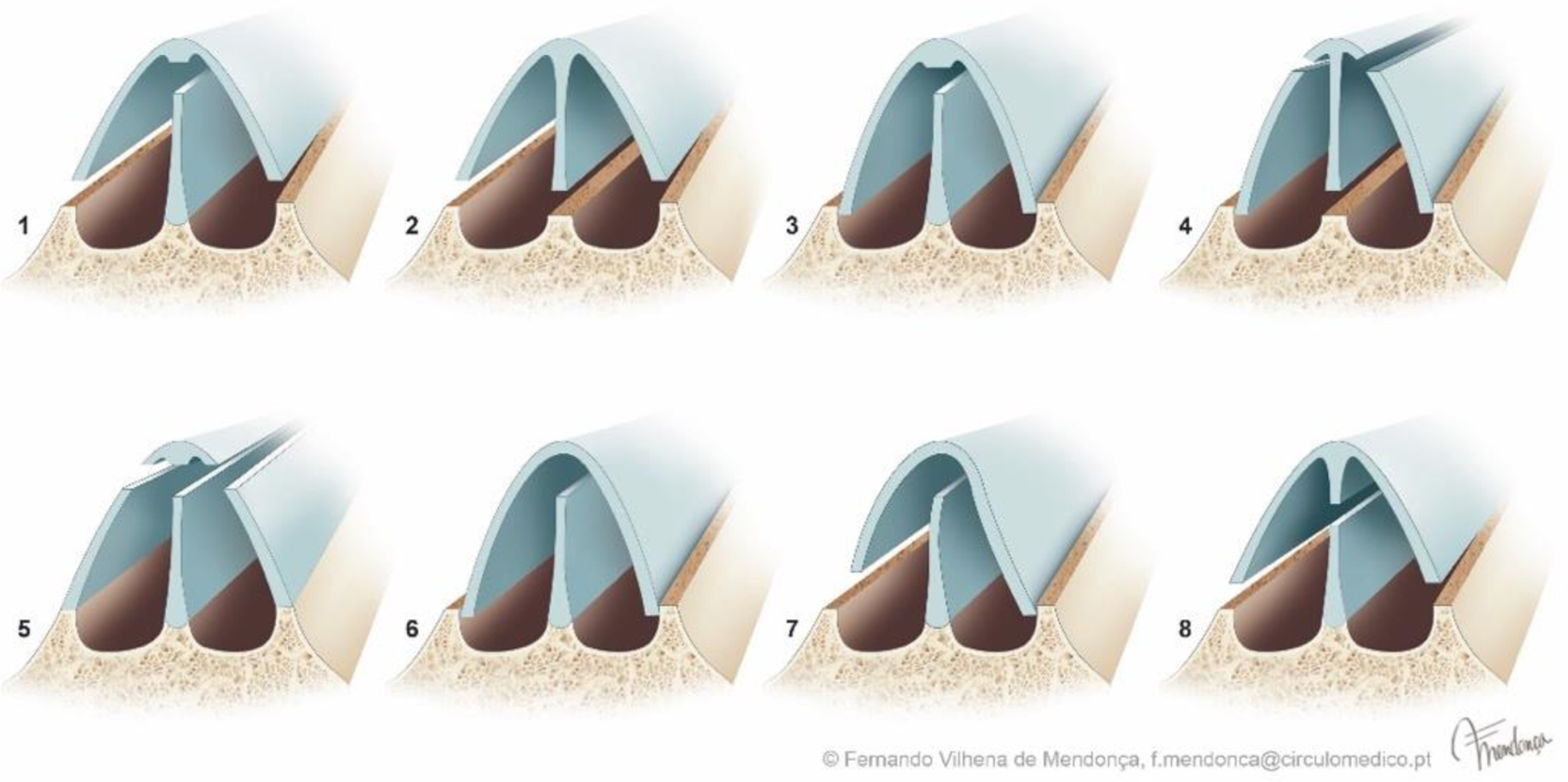 For more details of the surgical technique we invite you to read the original articles “The Split Preservation Rhinoplasty, The Vitruvian Man Split Maneuver” and “The Segmental Preservation Rhinoplasty, The Split Tetris concept.”