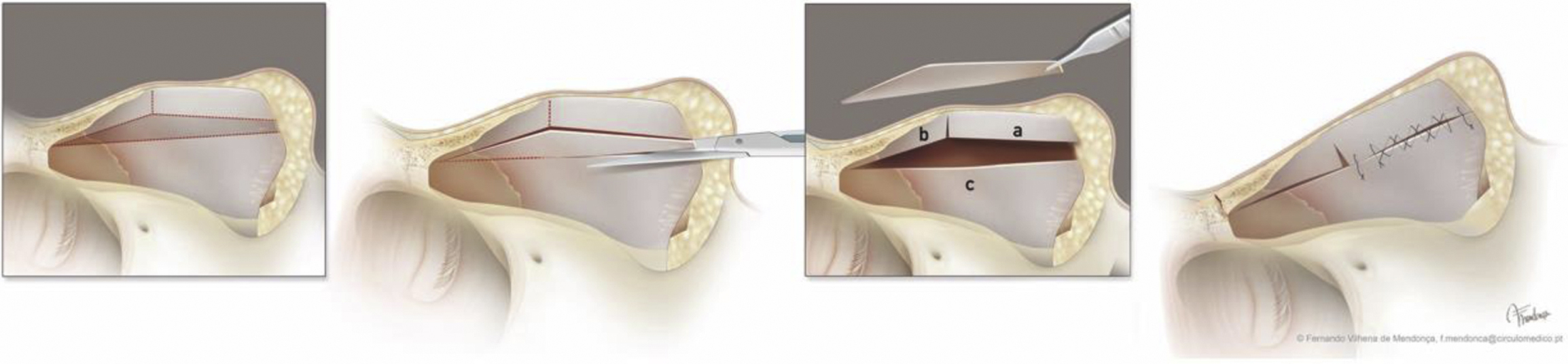 The main author, a disciple of Dewes since 2008, gradually changed his preference from the low septal strip to the intermediate septal strip, as explained elsewhere in this article, having taken into consideration the ideal indication of each case. Regarding the lateral wall, in the majority of cases the let-down technique is used.
