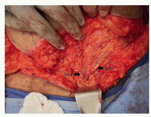 Occasionally, the superficial circumflex iliac vein (SCIV) and SIEV join into a common branch before draining into the femoral vein and if taken together can be used to enhance venous drainage of the flap (FIG 2).