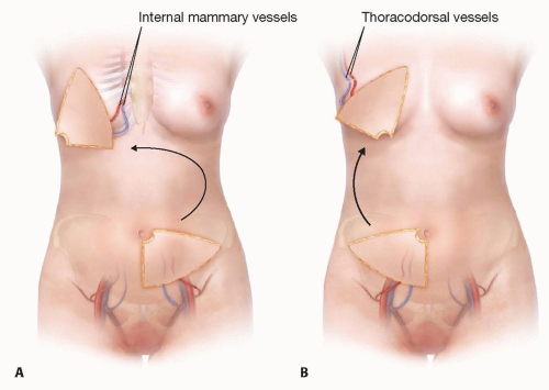 A single large mastectomy defect may require a complete abdominal flap for coverage. An SIEA flap can be used together with the contralateral SIEA, DIEP, or MS-TRAM flap.