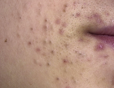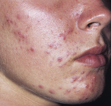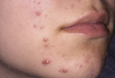 An overview of diagnosis and treatment is presented at the beginning of this chapter (see Figs. 7.1 to 7.3 ). The types of lesions present are determined (i.e., comedones, papules, pustules, nodules, or cysts). The degree of severity (mild, moderate, severe) is also determined.