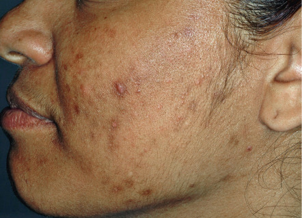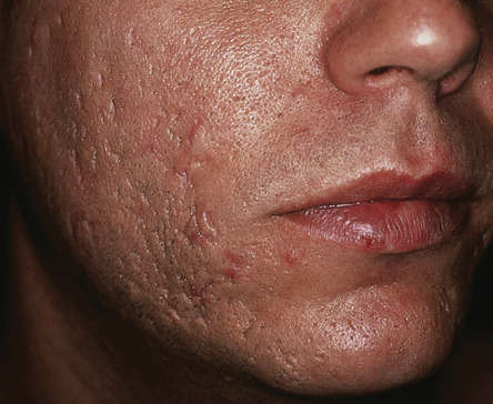 Early treatment of acne is essential for the prevention of lasting cosmetic disfigurement due to scarring. Erythema and postinflammatory hyperpigmentation ( Fig. 36.8 ) often persist after resolution of inflammatory acne lesions. Although the pigmentary changes usually fade over many months if the acne is brought under control, occasionally they can be permanent. Unfortunately, pitted scars ( Fig. 36.9 ) or hypertrophic scars (most commonly on the trunk; see eFig. 98.1 ) are often sequelae of nodulocystic acne.