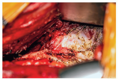 • Pass a Lane retractor through the psoas capsule interval and feel the ischium