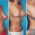 Left anterior oblique view 1 week after comprehensive single-stage surgery designed and described in Fig. 2.2. The breasts are temporarily overfilled in the upper poles and underfilled in the lower poles. There is temporary gathering of the superior flap of the abdominoplasty. The umbilicus and flanks are swollen