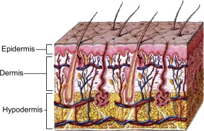 Skin is a complex organ covering the entire surface of the body. It provides a protective physical barrier between the body and the environment, preventing losses of water and electrolytes, reducing penetration by chemicals, and protecting against pathogenic microorganisms. The skin is important in regulation of body temperature and provides immunologic surveillance. It contains sensory and autonomic nerves and sensory receptors, which detect incoming stimuli of touch, vibration, pressure, temperature, pain, and itching.