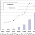 The graph above, Figure 15, contrasts the absorption of humectants at high-humidity and low-humidity conditions over the course of time. The humectants were initially dried to constant weight and then exposed to high, 65% RH over 15 days with the water weight uptake measured. At the end of day 15 the humectants were exposed to low, 35% RH for an additional 15 days with the water weight loss measured. The first case measures the greatest hydration from atmospheric moisture that can be expected to be attained while the second case measures the moisture retention under dry conditions.21