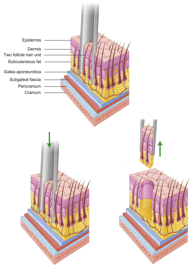 The follicular unit is a delicate structure that is vulnerable to several types of injury during the extraction process. Transection is perhaps the most common injury observed with FUE ( Fig. 2 ). Success with FUE depends on being able to predictably dissect excellent-quality grafts from the donor region. A high-quality trephine punch is mandatory for the accurate isolation of individual follicular units. The hair restoration surgeon must have a thorough understanding of the FUE punch and the nuances of FUE surgical technique to ensure consistent graft quality.