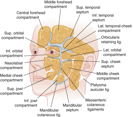regional anatomy, anatomic variation, retaining ligaments, fat compartments, skeletal aging