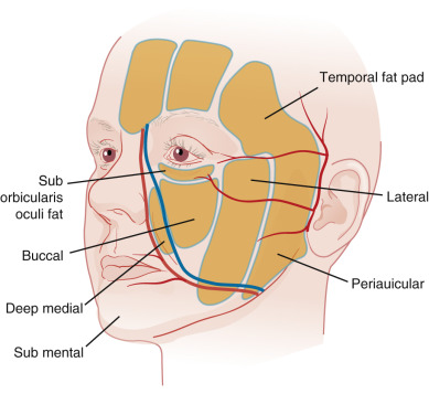 Generalized lipodystrophy of subcutaneous fat and specific resorption of the facial fat compartments and particularly the buccal fat pad ( Figs. 1.5 and 1.6 ) leads to a volume depletion of the face, resulting in a sunken appearance of the cheeks and a hollowing of the temples. What used to be thought of as a simple act of gravity creating a sagging face is now known to be a much more complicated interaction of fat atrophy, bone resorption, dynamic musculature, and changes in collagen and elastin.
