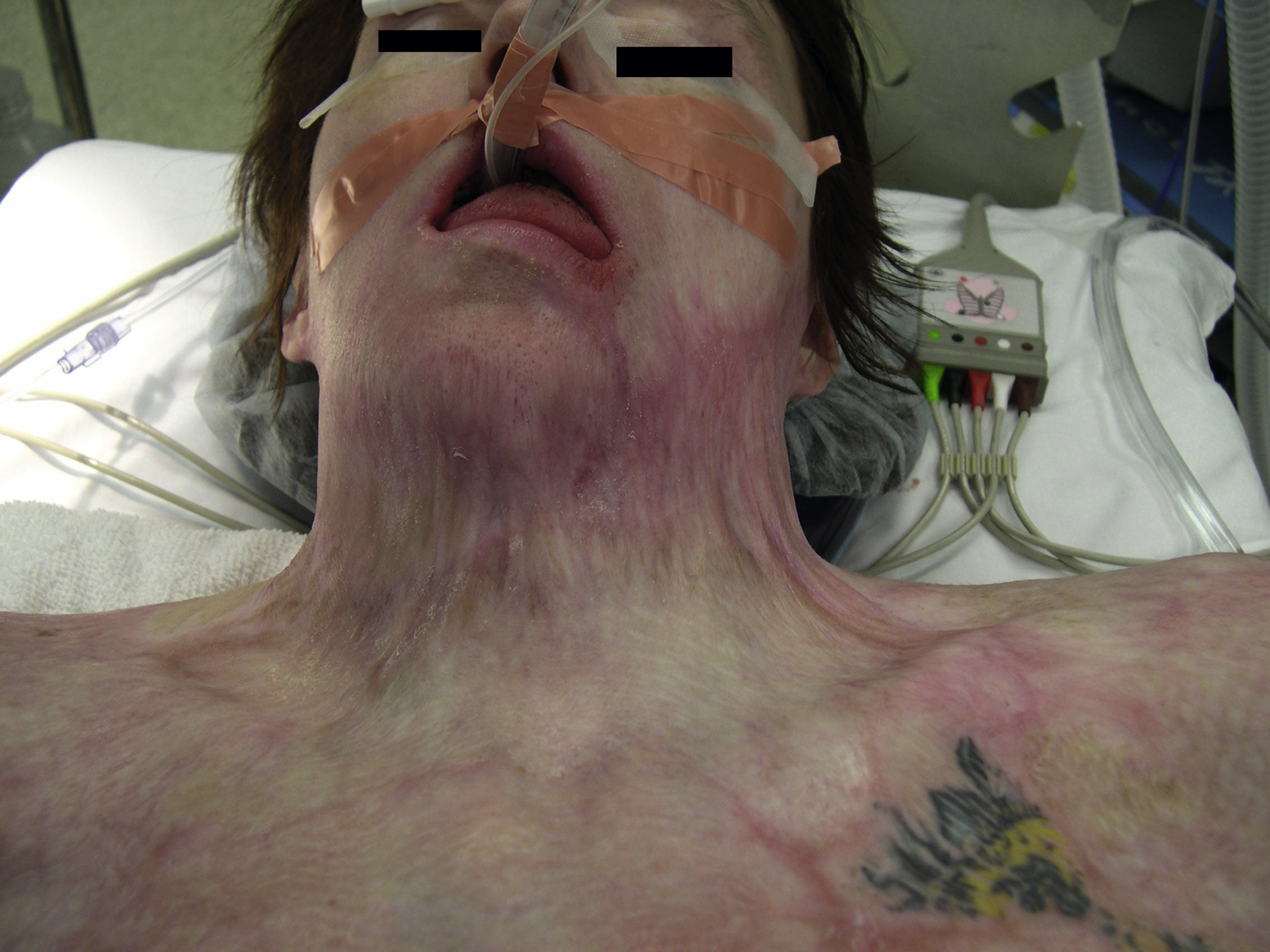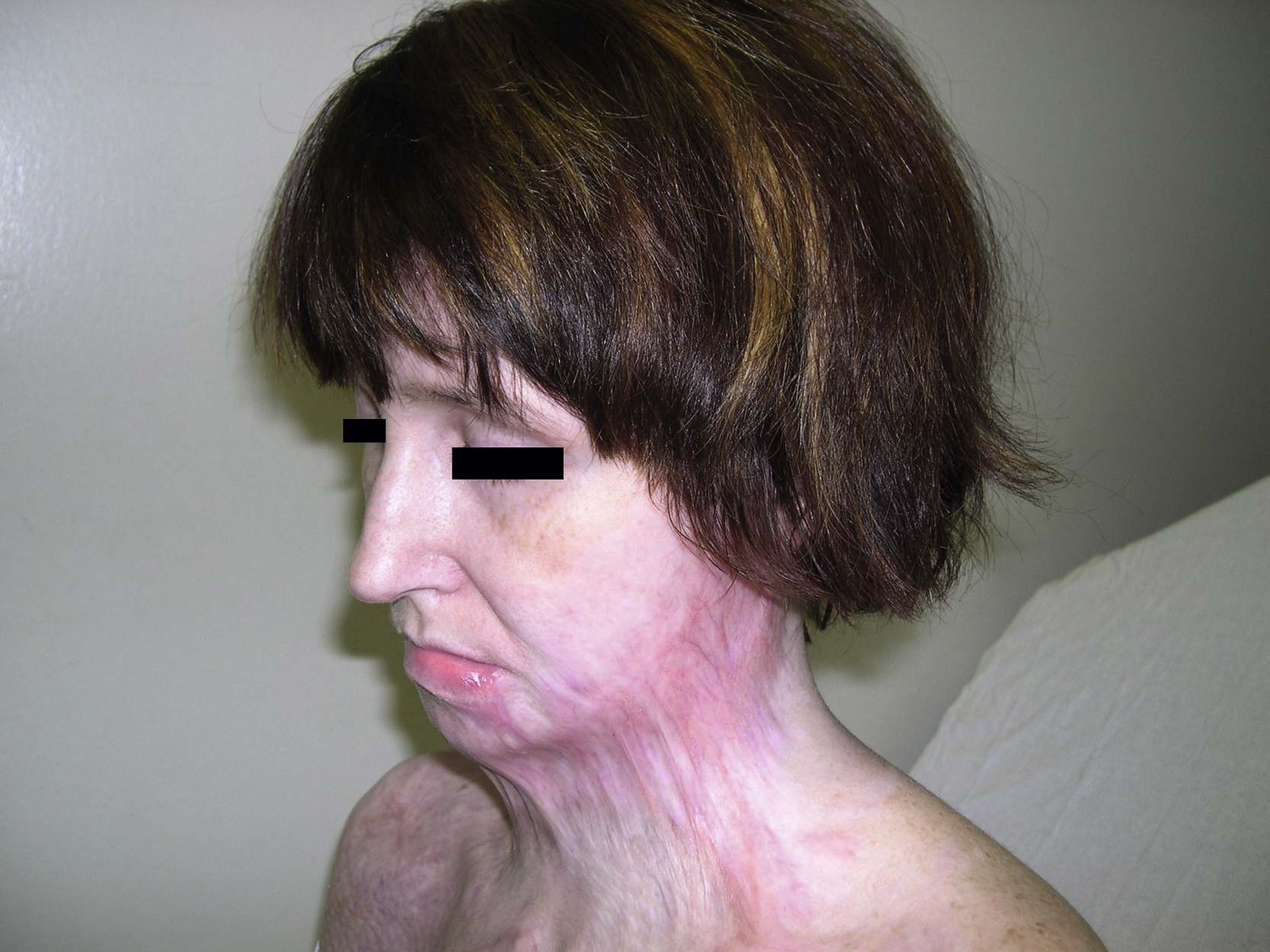 A 30-year-old White female sustained severe neck contracture from a previous burn injury about 5 years ago. She had excision of the deep burn wound and skin grafting in a local hospital but unfortunately developed severe anterior neck scar contracture ( Fig. 11.1 ). She reported severe limitation of the range of motion (ROM) in her neck especially neck extension and requested a surgical release of the scar contracture so that her neck ROM could be improved ( Fig. 11.2 ).