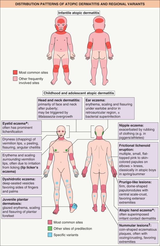 Distribution patterns of atopic dermatitis (AD) and regional variants.