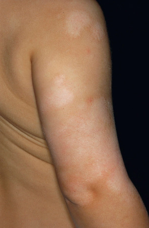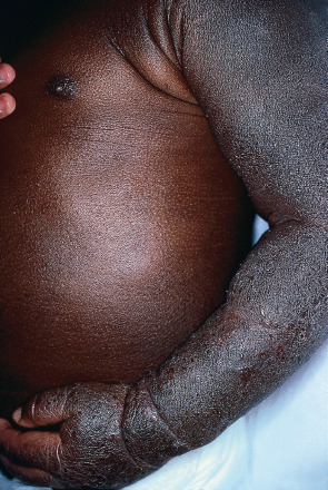 • “Goose bump-like” appearance of the skin, most often on the trunk (see Fig. 12.6 )