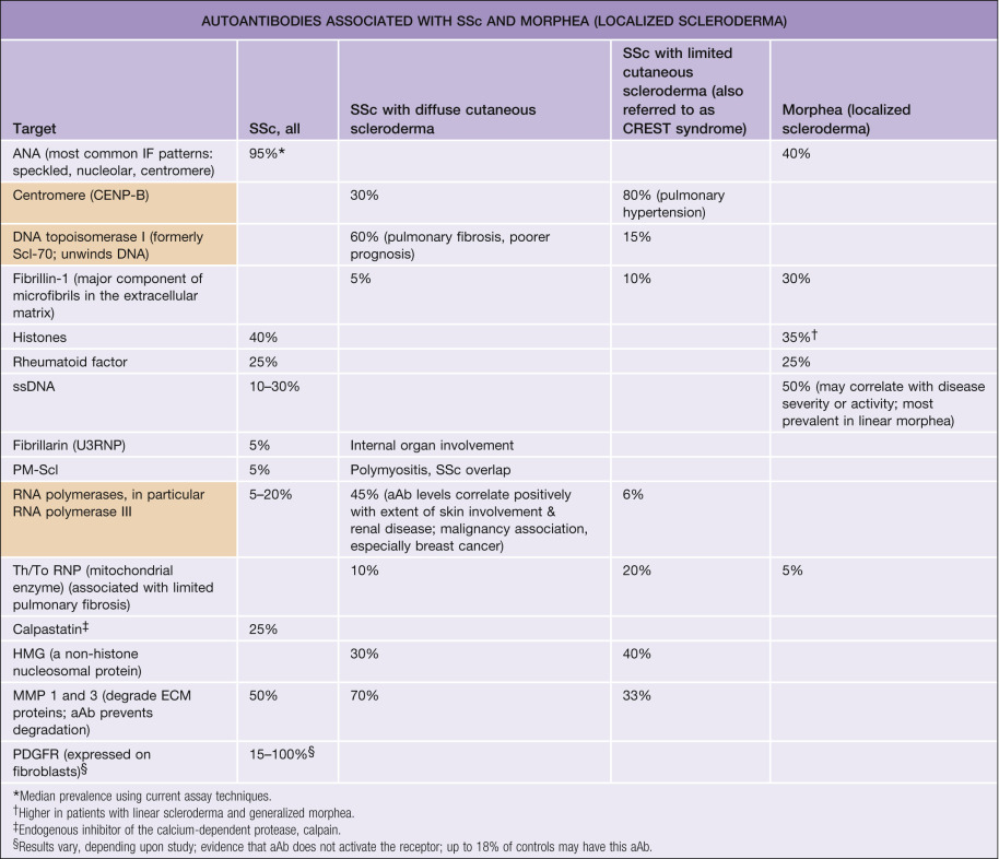 Autoantibodies associated with systemic sclerosis (SSc) and morphea (localized scleroderma).