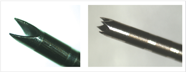 Fig. 66.1 The inner needle system with both the two- and four-prong configurations. The bands on the punch are “seen” by the system to gauge the depth of insertion.