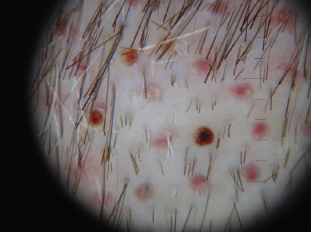 The dual punch dissection system consists of a two- or four-pronged inner needle (IN) used to “score” or incise the skin and an outer blunt “coring” punch (CP) that enters the incision created by the IN, dilates the incision, and dissects the graft. The reason for the dual punch system is related to the need to stabilize the skin with the tension device and how it alters the natural skin interaction with the robotic device’s blunt CP. The IN has two configurations, a two- and a four-prong arrangement (Fig. 66.1), with the four-prong system intended to create a more uniform limited depth incision. There are black bands on the punch that are “seen” by the vision system that allows the system to adjust incisions to the desired depth as determined by the operator. The IN creates a shallow incision, approximately 1.5 to 2 mm deep, which is enough to allow the CP to enter the skin easily. The IN comes in an 18- or 19-gauge configuration that corresponds to a 0.9- or 1-mm-diameter skin incision and these are the actual sizes of the incisions (Fig. 66.2).
