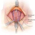 ■ The skin is elevated using skin hooks or sharp rakes. It is important that the surgical assistant holds the flaps straight up and not retract them back (which residents will sometimes do in order to get a better view). The surgeon retracts the tissue with the opposite hand in order to apply strong countertraction and identify the appropriate tissue plane.
