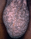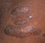 In addition to differences in the color of inflammatory lesions, individuals with darkly pigmented skin also have an increased frequency of several cutaneous disorders (see section on Color ) and certain types of reaction and distribution patterns . Examples of these reaction patterns include papular eczema and a follicular accentuation of atopic dermatitis and pityriasis versicolor, as well as an annular configuration of seborrheic dermatitis and facial secondary syphilis. An example of a favored distribution pattern is inverse pityriasis rosea in which lesions occur primarily in the axillae and groin rather than on the trunk. Although a sound explanation for these phenomena is not currently available, it is still important to be aware of their occurrence .