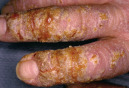 • Primary lesion: dermatitis, with vesicles, bullae and weeping when severe