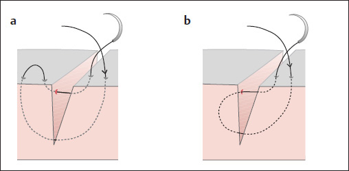 a, b a Vertical mattress suture (Donati type). b Vertical mattress suture (Allgöwer type).
